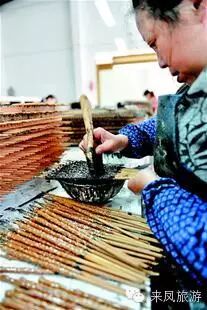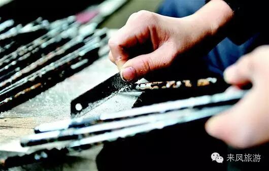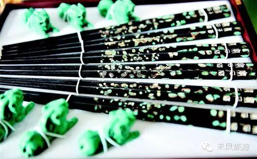 已有170余年历史的“来凤漆筷”是来凤县地方特产,被列入国家非物质文化遗产保护项目,是国家地理标志产品、“灵秀湖北”旅游商品。其选用红木、乌木、黄杨木等多种名贵木材为原料,经30余道工序精制而成。制作过程中,按程序镶入珍珠贝壳、珍珠粉等,使其色泽斑斓,光鲜亮丽。