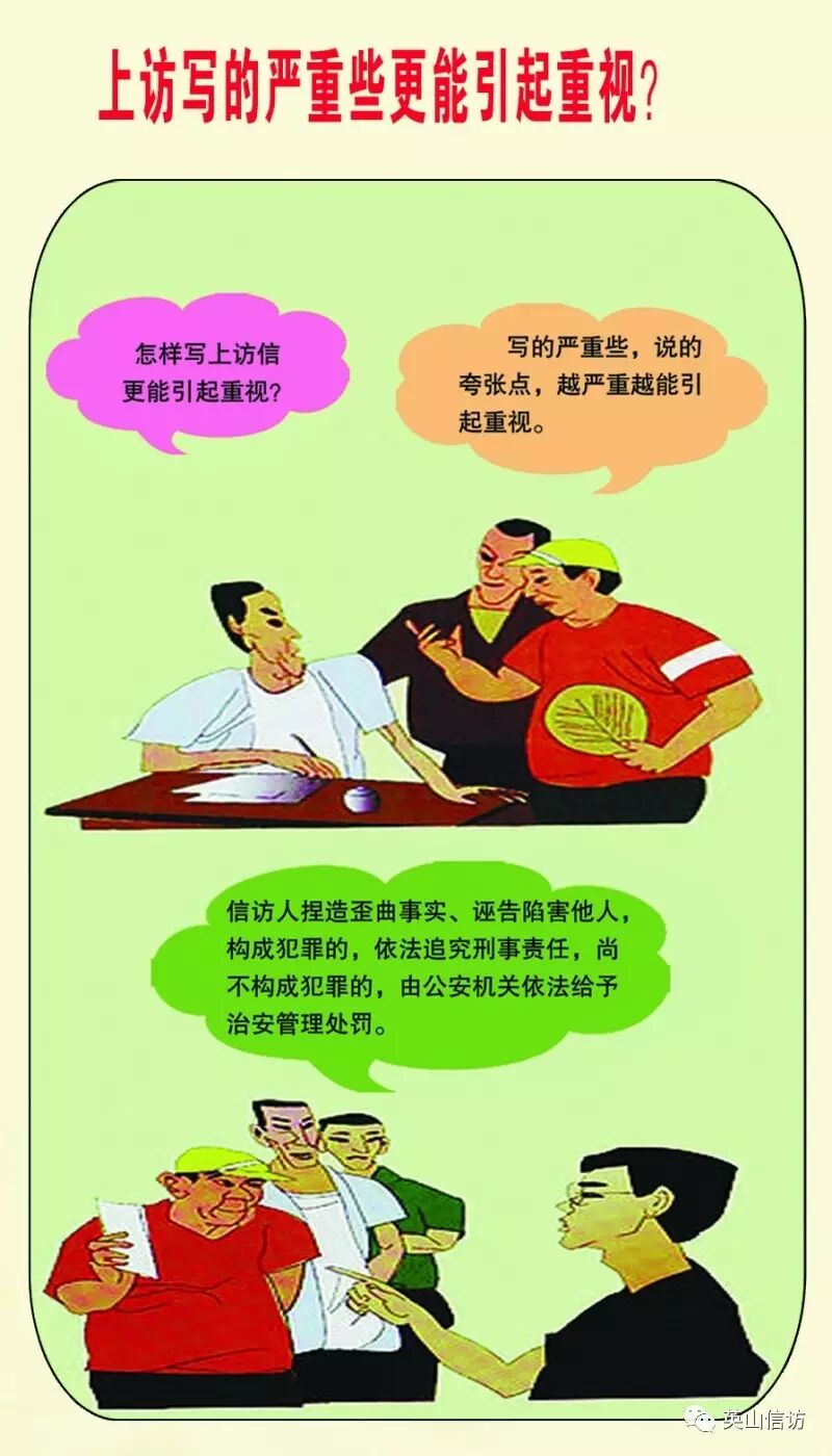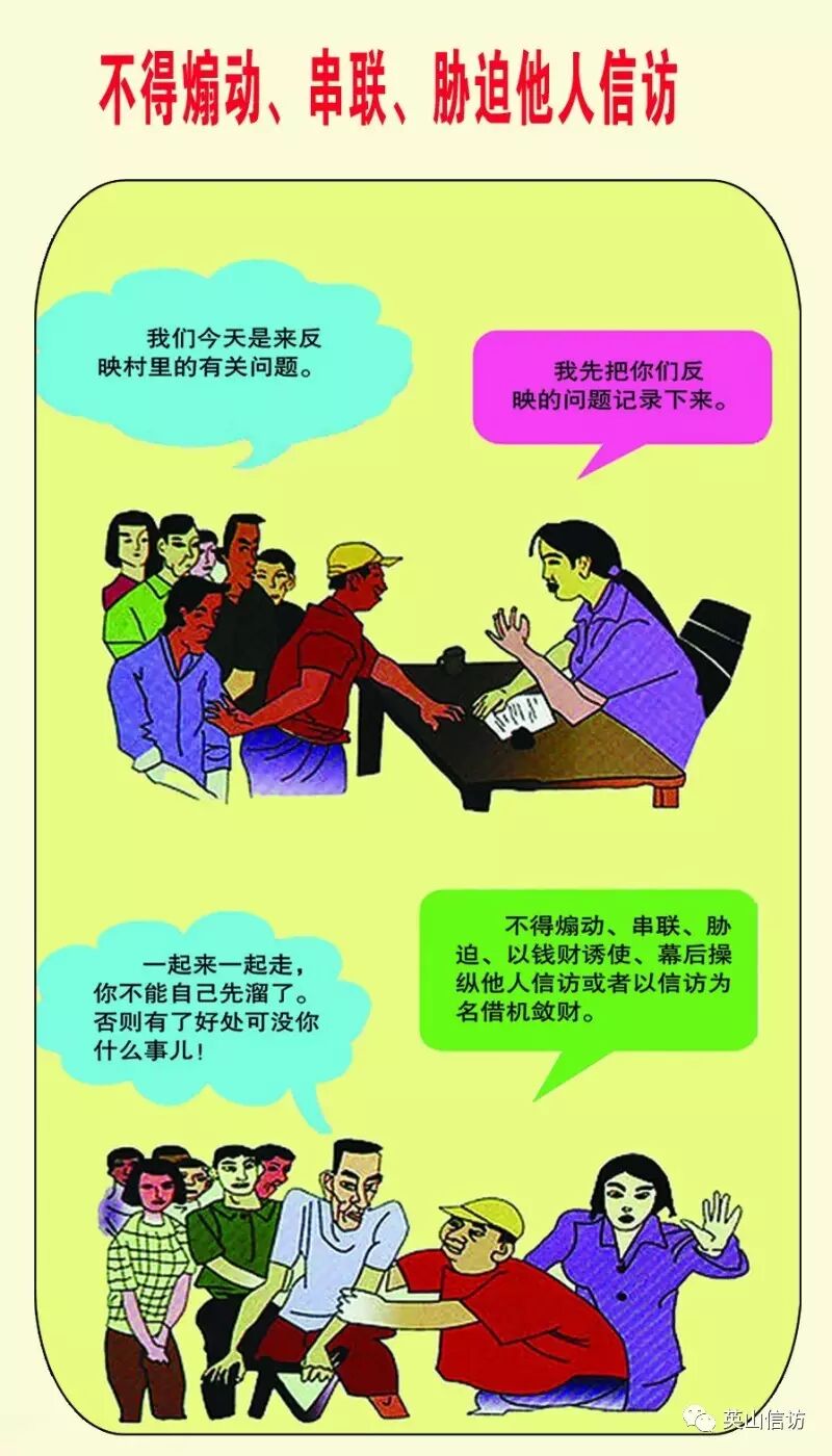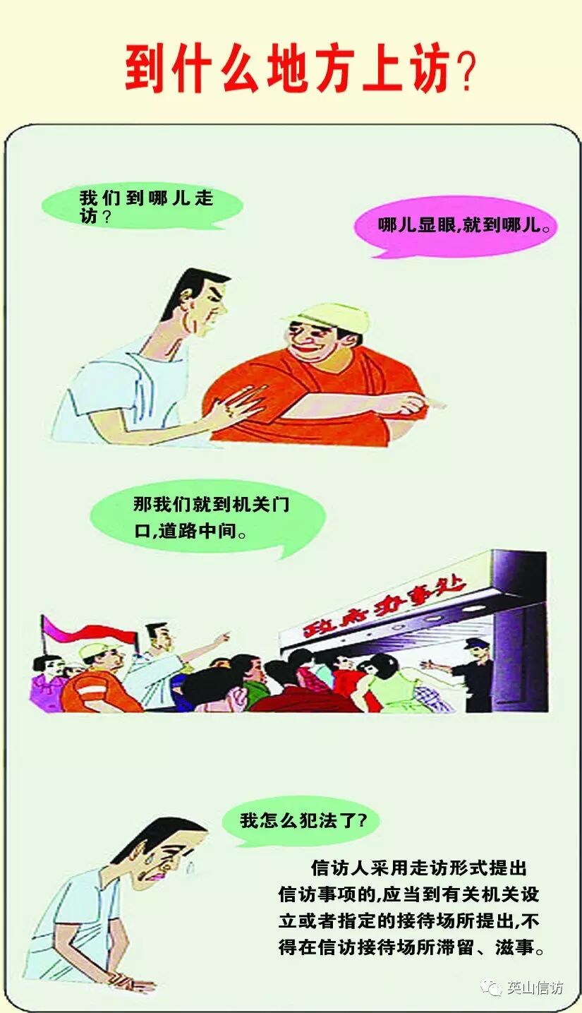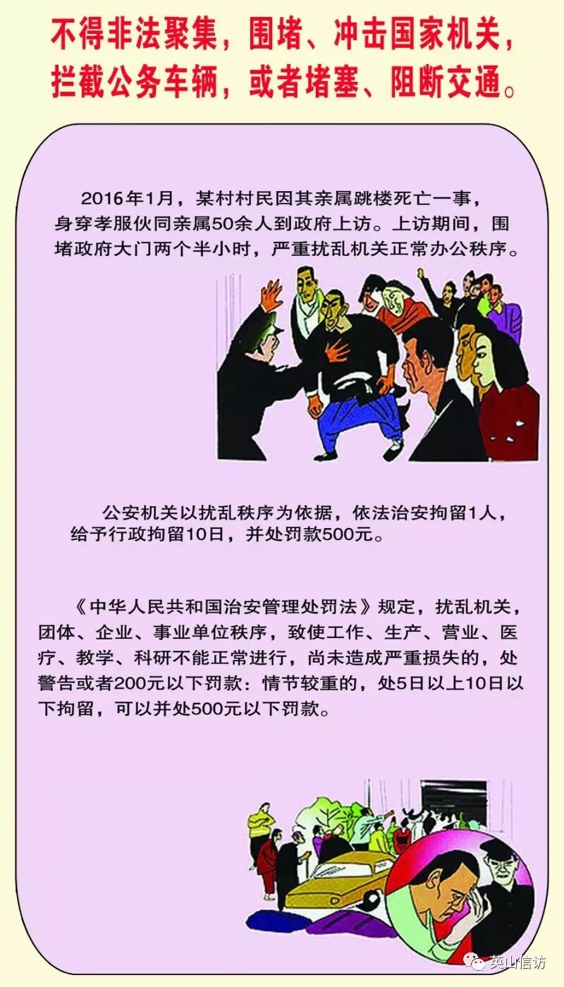 依法信访莫违法 ©原创 2017-03-16 17:07 转自英山信访 0 依法逐级理性反映合理诉求,是每个公民的权利,但有下列过激、不当的行为,可是违法的哦!让我们一起去看看吧! 信访提示:通过正确的渠道,采取理性的方式,反映正确的诉求。切莫“有理上访”变成“无理取闹”,“合法诉求”变成“违法犯罪”。 (作者:转自英山信访)