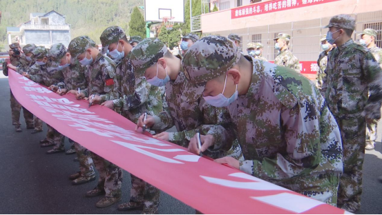 开训动员大会在一片军歌嘹亮中拉开序幕,动员会上,预定新兵代表和集训队教官代表发言。县人武部部长付相永告诫应征青年,要好好把握役前训练的机会,扎实训练自己的思想、作风和体能,走好参军入伍的第一步。大会结束后,全体应征青年集体在“学习英雄张富清,建功立业在军营”的横幅上签名表决心,一起签下矢志报国、强军兴军的誓言。人武部还邀请到了优秀现役军人谢涛结合自身在军营的经历为大家传授经验、分享心得,他说:“接下来的准战友,要做到接过英雄手中的钢枪,在自己的岗位上继续奋斗,为强军革命事业贡献自己最大的努力。去了部队以后一定要牢记我们是英雄传人的身份,勿忘初心见红旗就扛、见第一就争,展现好我们来凤儿郎的大好风采。为我们的家乡再立新功、再创佳绩、再添光彩。”